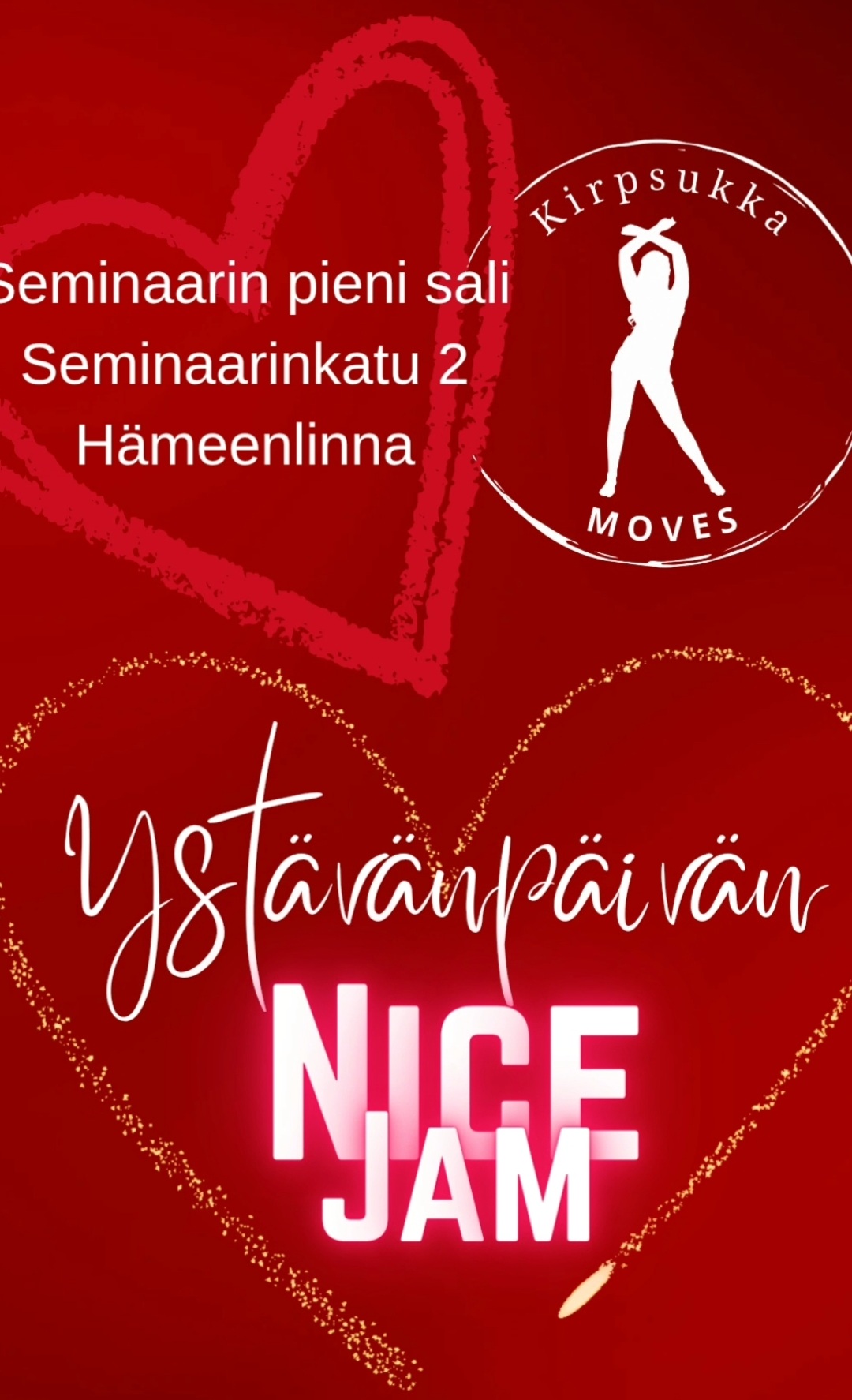 NiceJamissa jokainen askel on oikea askel, eikä tanssikokemusta tarvita. Tärkeintä on heittäytyä mukaan ja nauttia! Tule fiilistelemään Love-teeman biisejä ja koreografioita, joissa yhdistyvät ilo lämpö energia “me tanssitaan yhdessä” -tunnelma
